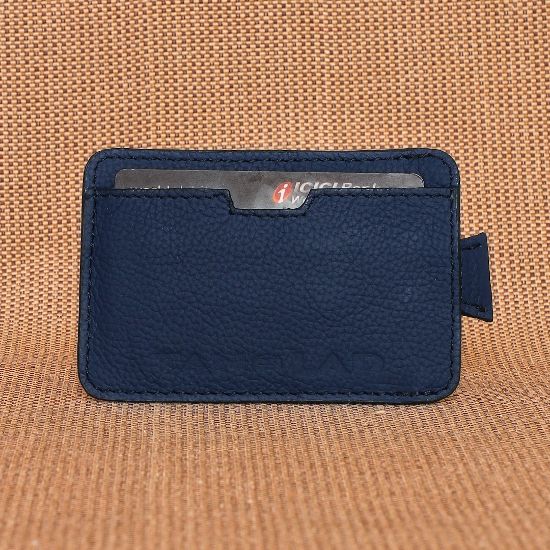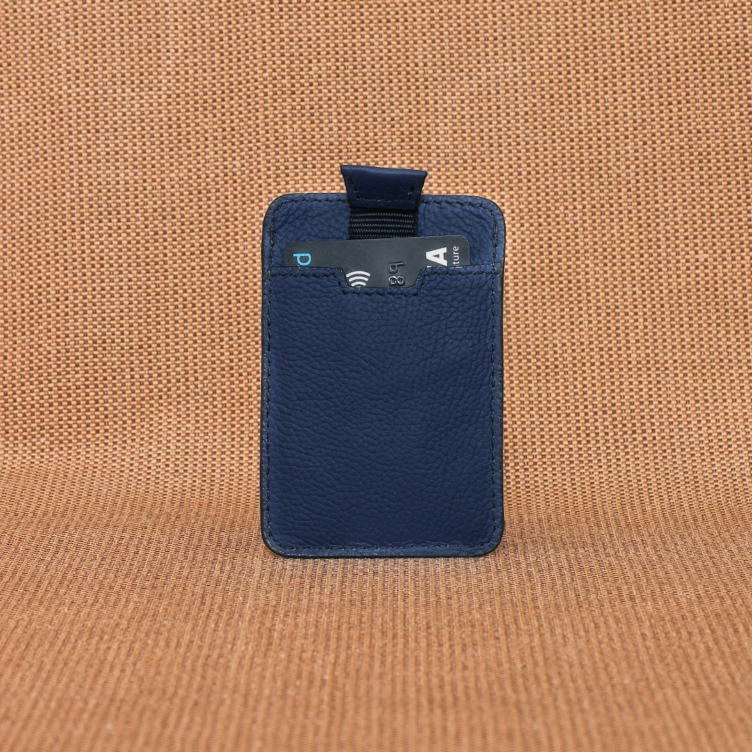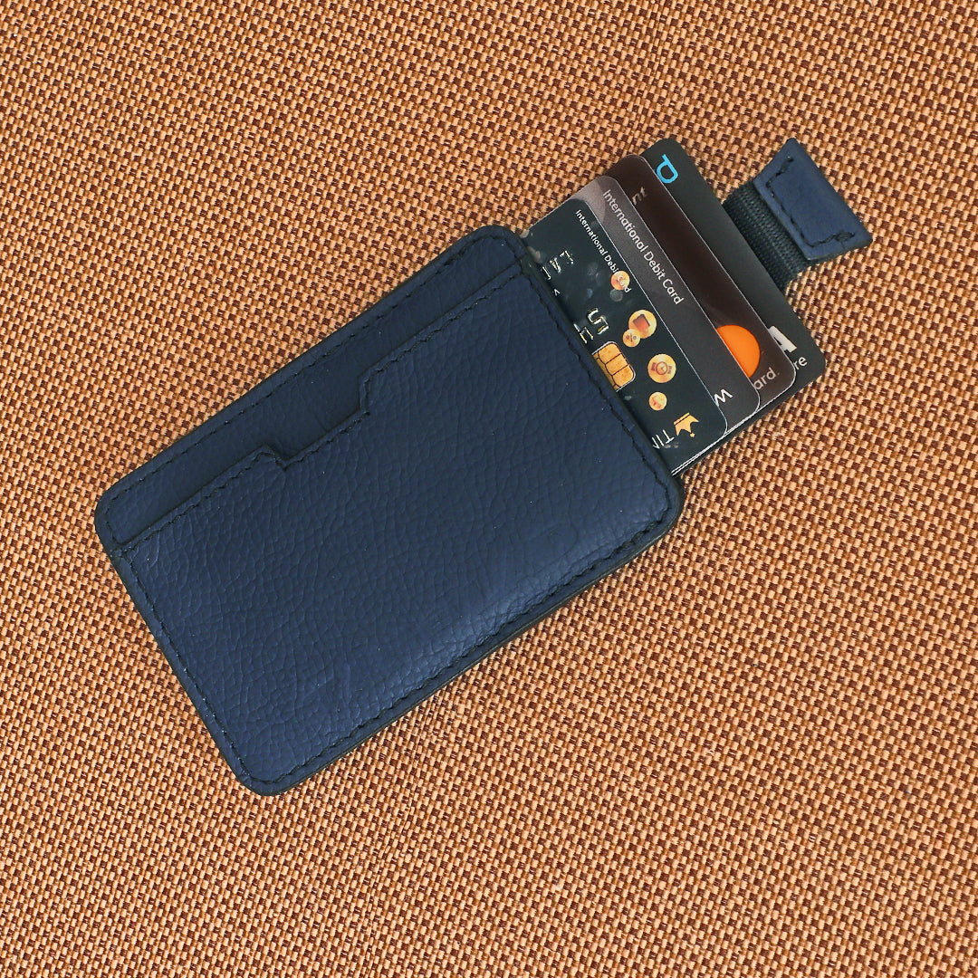 Crafted from amazing Navy leather, It has 1 card slot in the front and another in the back, Kai offers quick access to your most essential cards. It also features a clever pull-tab function, allowing you to easily pull out up to 5 cards from the central compartment—no more fumbling through your wallet!