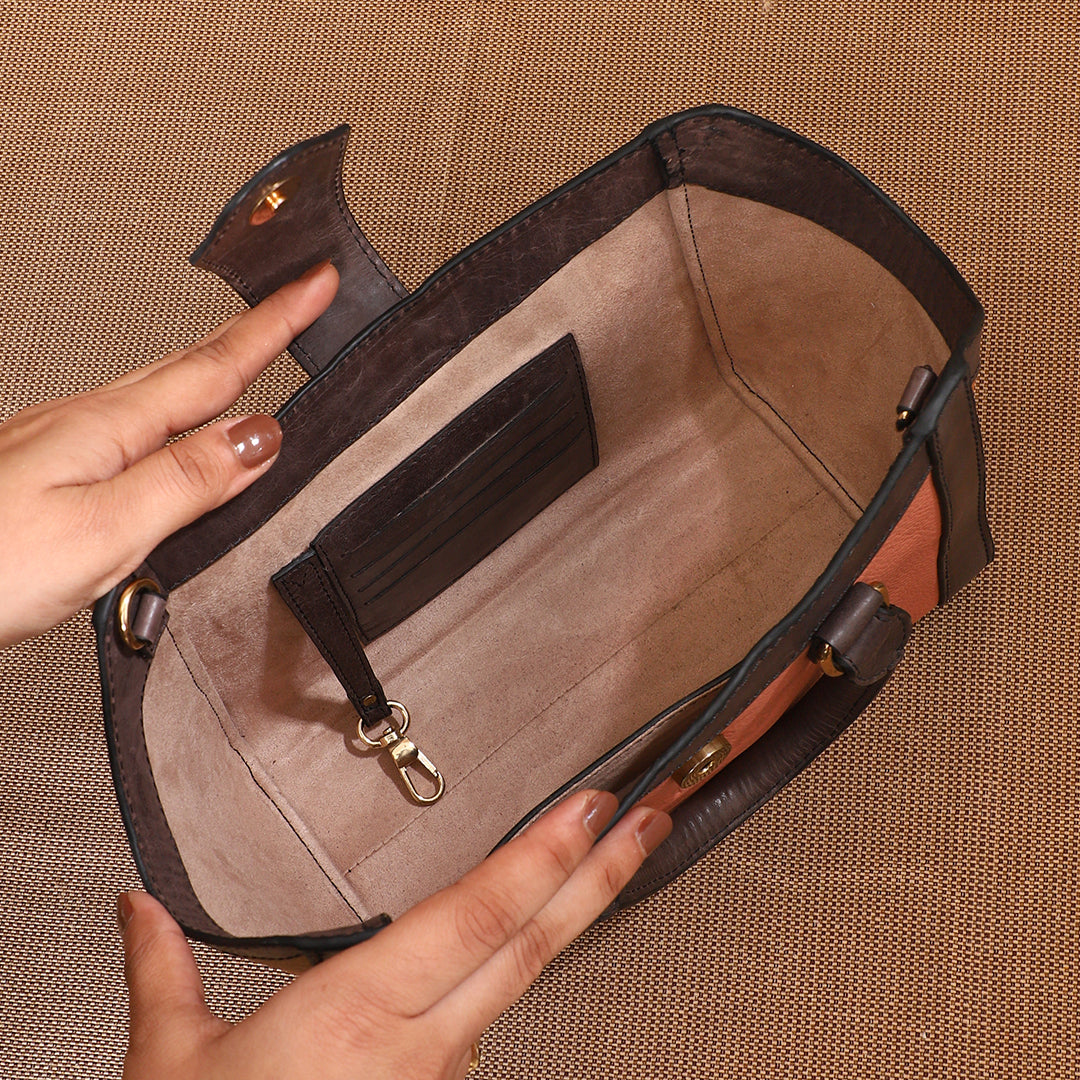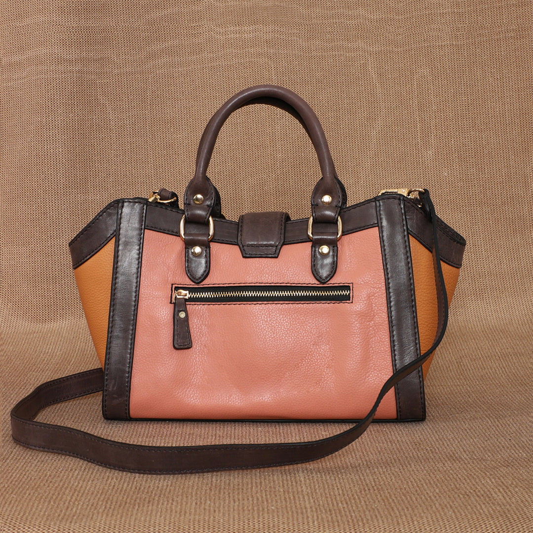 Crafted in gorgeous Blush, Peach and Black Currant leather, this handbag has a magnetic loop closure, combining ease and elegance. Though petite, the Little Serena offers ample space for your mobile phone, wallet, and a touch of make-up, making it ideal for both day-to-day activities and special occasions.
