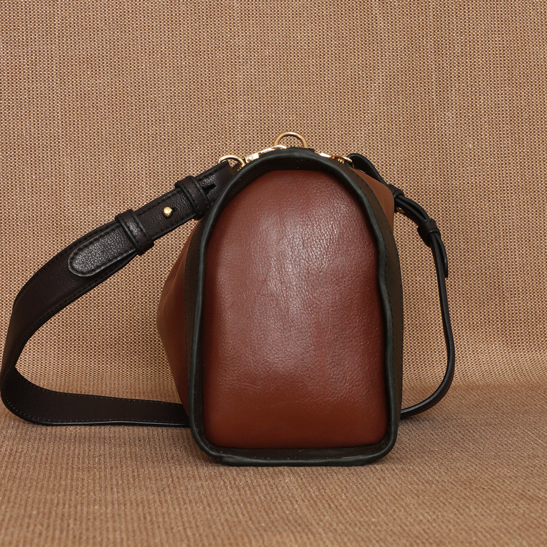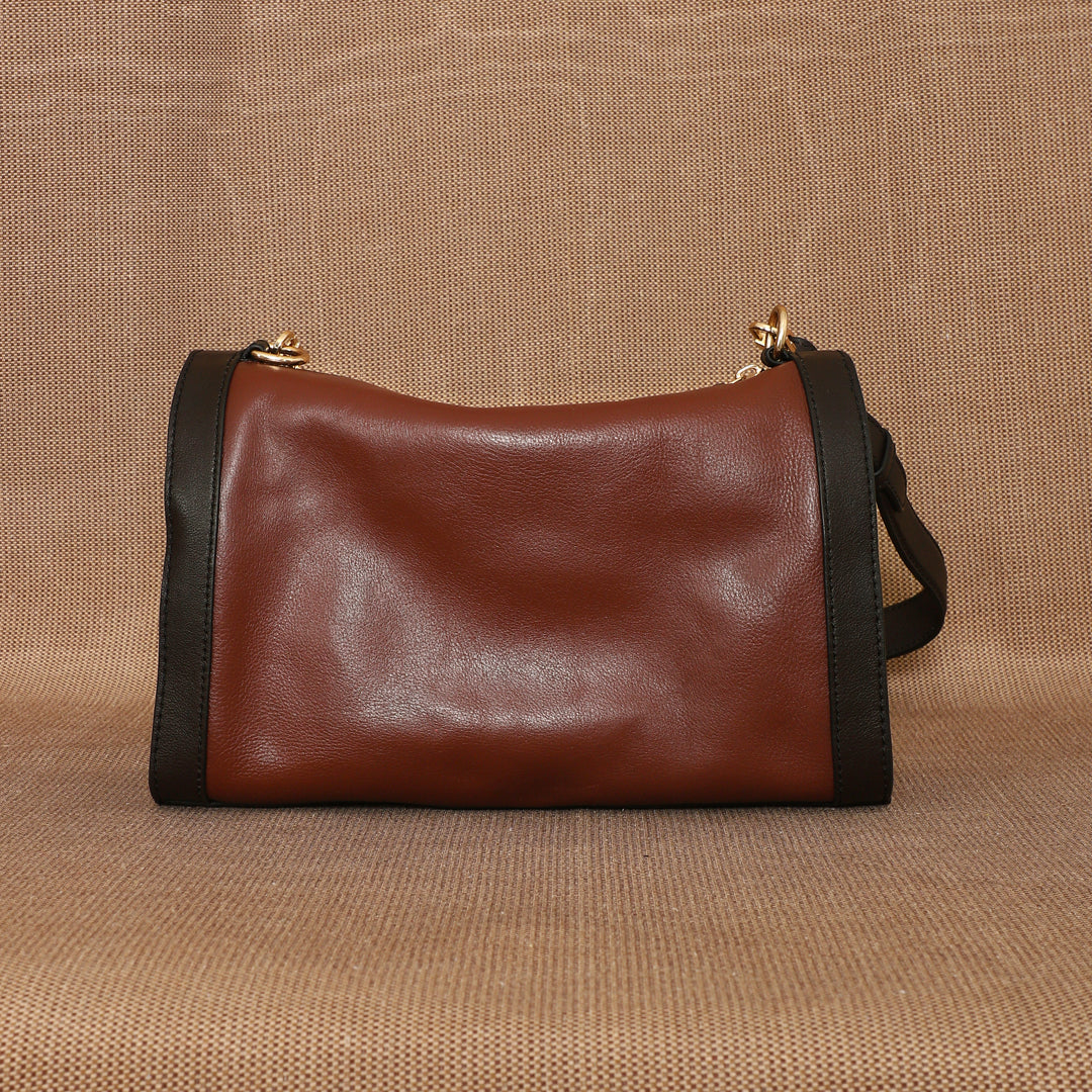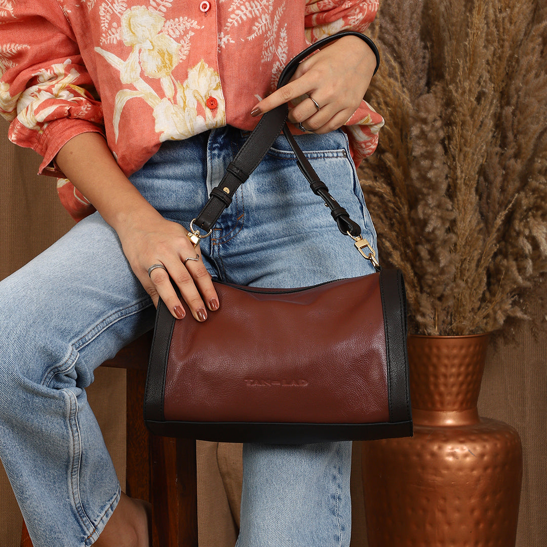 Crafted with gorgeous Cherry and Ganache leather, this bag features a zipper closure, ensuring the safety of your essentials while still offering easy access. The spacious main compartment allows for ample storage, perfect for your daily must-haves.